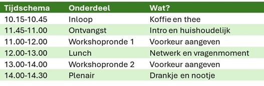 Er is keuze uit de volgende workshops: