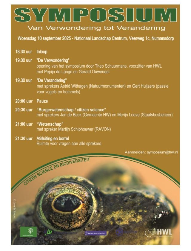 Het Hoekschewaards Landschap organiseert dit symposium over de groeiende belangrijkheid van de waarnemingen door burgers voor natuurbeheer, beleid en wetenschap.