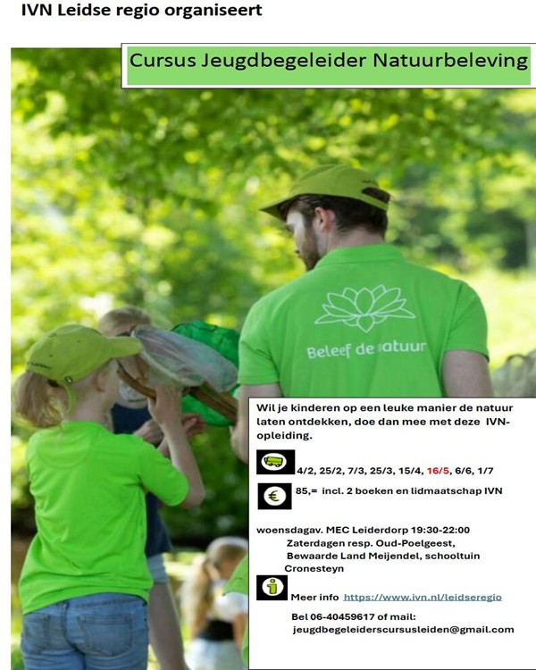 Voor wie het heerlijk vindt om buiten te zijn, de natuur te ontdekken en dit samen met kinderen te doen. IVN Natuureducatie afd. Leiden verzorgt binnenkort deze mooie cursus voor geïnteresseerden.