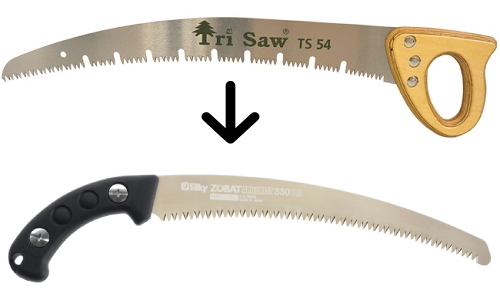 De eerste verandering is het onderscheid wat we gaan aanhouden tussen small, medium en large snoeischaren. De tweede is dat er takkenscharen met aambeeld in de uitleen komen. Daarnaast gaan we geleidelijk afscheid nemen van de Jirizaag. Mede door het foudraal, omdat deze niet meer leverbaar is, is deze zaag wat minder makkelijk te vervangen bij vermissing. We houden de huidige selectie uiteraard in stand en vervangen alleen waar dat nodig is. Het alternatief wordt de Silky Arborist. Deze zaag is uitermate geschikt als vervanging voor de Jiri Tri Saw. Het zaagblad is een stuk korter maar de vertanding is vergelijkbaar. De Arborist wordt aangeschaft met een blad van 330 mm en een vertanding van 5,5 tanden op 30 mm.