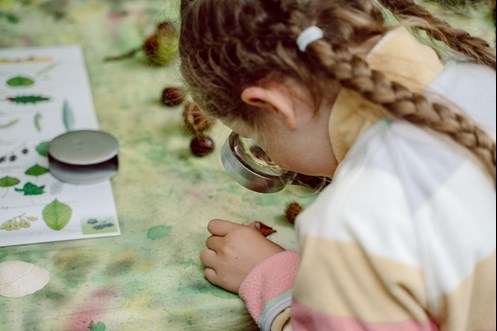 “Dat geven we de gidsen inderdaad mee, dat ze niet alleen een verhaal moeten vertellen maar mensen ook, als het bijvoorbeeld over bomen gaat, de schors laten voelen of de stam laten opmeten. Dat doen is echt belangrijk. Beleven. We hebben ook een post met zintuigen. Zodat je ook al je zintuigen gebruikt. Zo leer je vanalles door de natuur niet alleen te zien maar ook aan te raken, te ruiken of door eens goed te luisteren.”