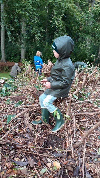 Net als het verlaten vogelnestje dat aan iedereen wordt geshowd en als belangrijke schat mee naar huis gaat. Aan het eind van de ochtend is het beste bij Jack er wel vanaf. De ‘hut’ in het nog te zagen bosje is leuke afleiding. Ook de andere kinderen staan intussen in de speelstand.