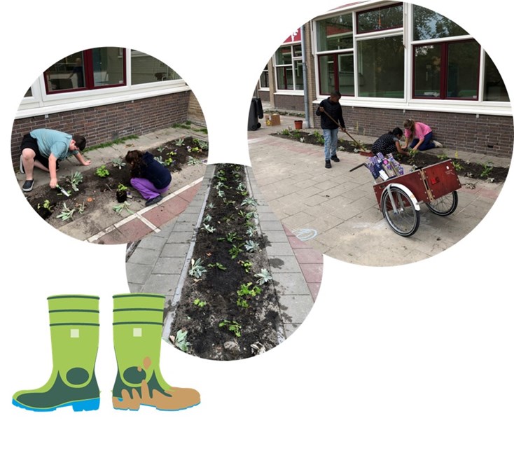 De leerlingen zijn trots op hun zelf aangelegde plantvakken die de versteende omgeving ook nog eens klimaatadaptiever maken. Het plein is openbaar toegankelijk en de plantvakken zijn vanaf de straat te zien. Zo geniet de omgeving rond de school ook mee van de vergroening.