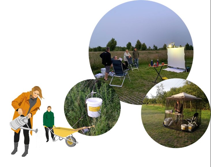 Door het gebruik van een parasol met klamboe wordt voorkomen dat vlinders uit de LED emmers wegvliegen voor ze geteld zijn. Met dit onderzoek kan worden bepaald hoe de biodiversiteit in het gebied zich ontwikkelt.