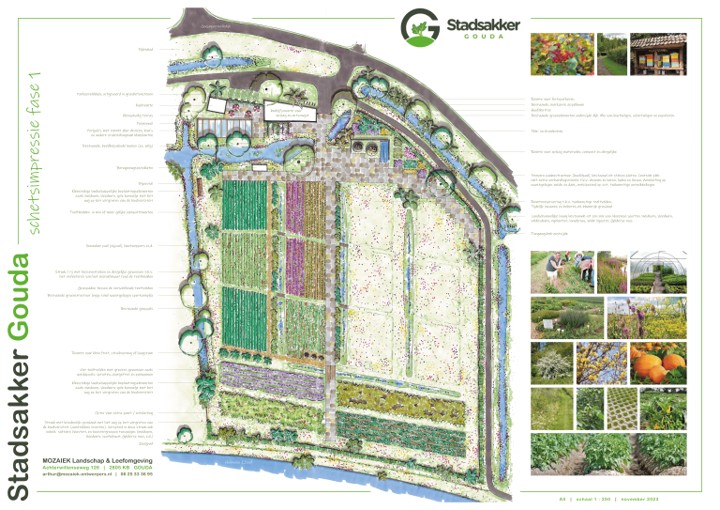 Op 2 hectare verbouwen we met een grote groep vrijwilligers diverse groenten en een klein beetje fruit op duurzame wijze op een stuk grond in de uiterwaarden aan het Goverwellepad in Gouda. Pesticiden en (kunst)mest worden niet gebruikt en door inzet van gevarieerde teelt en minimale grondbewerking optimaliseren we de bodem en vergroten we de biodiversiteit.